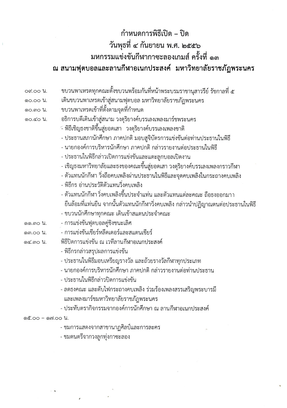 ในวันพฤหัสบดีที่ 19 ธันวาคม 2556 ตั้งแต่เวลา 07.00 น. (ดังกำหนดการแนบ)